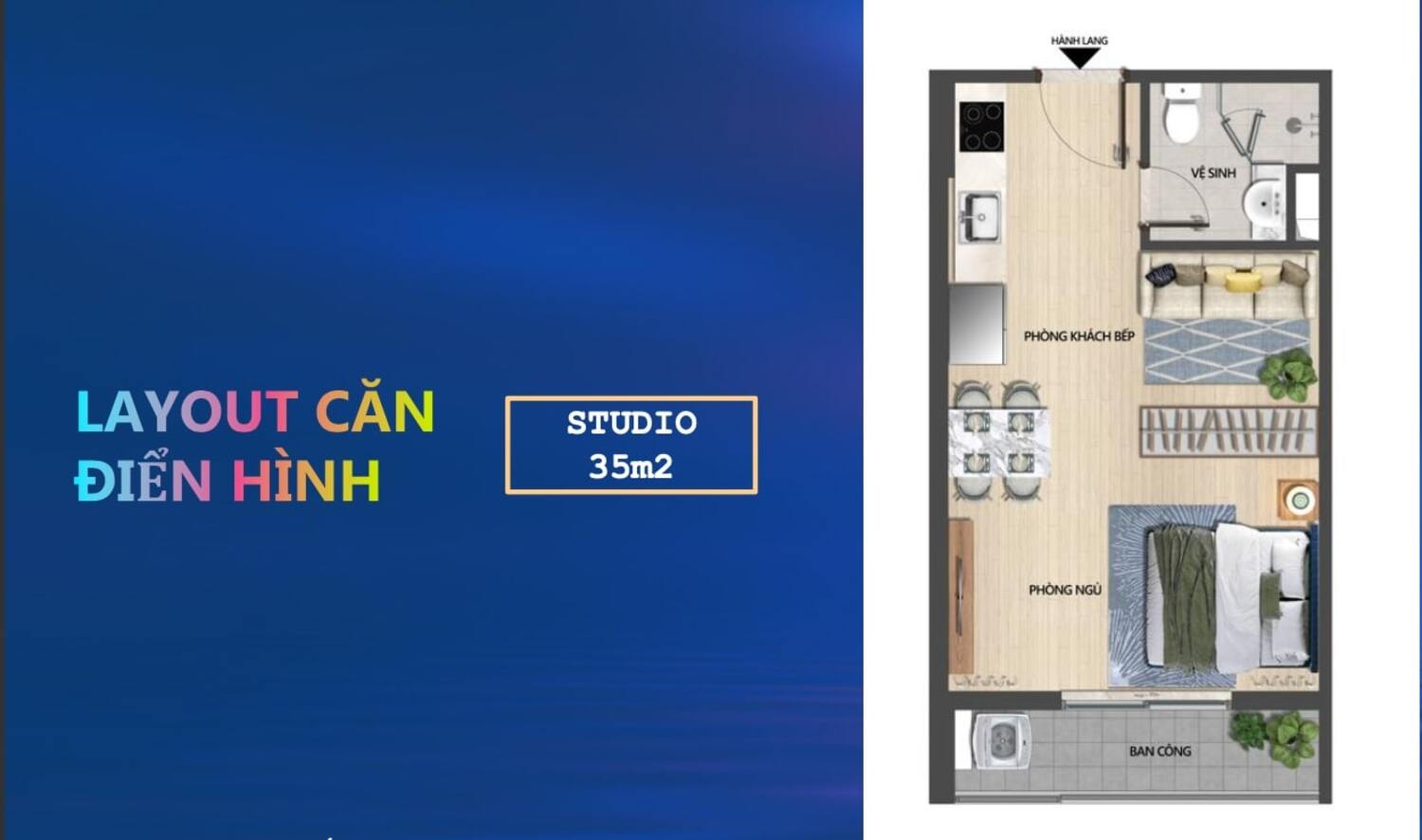 Căn hộ 1PN+1: 45–50m² giá giá 8.5 tỷ